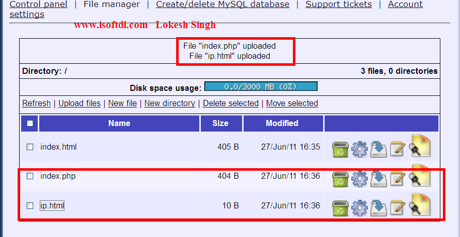 1. Using PHP notification Script Using this Notification script you can get the IP address in just seconds. Steps of using this PHP script: a. Download the PHP notify script and extract files. b. Now you will get two files IP.html and index.php . You need to upload these two files to any free web hosting server. Example: i used www.my3gb.com to upload these two files. Create an account there and upload these two files there as shown below.